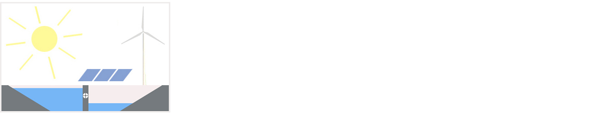 Betrieb: Beim Ausgleich der Wasserspiegel wird mit Wasserkraftturbinen erstmalig Strom erzeugt (Symbol rechts drehende Kreuze). In Spitzenzeiten werden mit überschüssigem Strom aus Solar- und Windenergie die unterschiedlichen Wasserspiegel mittels Pumpen wiederhergestellt, d.h. die Speicher wieder gefüllt (links drehende Kreuze). Bei Bedarf wird daraus neuer Ökostrom erzeugt (rechts drehende Kreuze). Dies wiederholt sich beliebig oft.